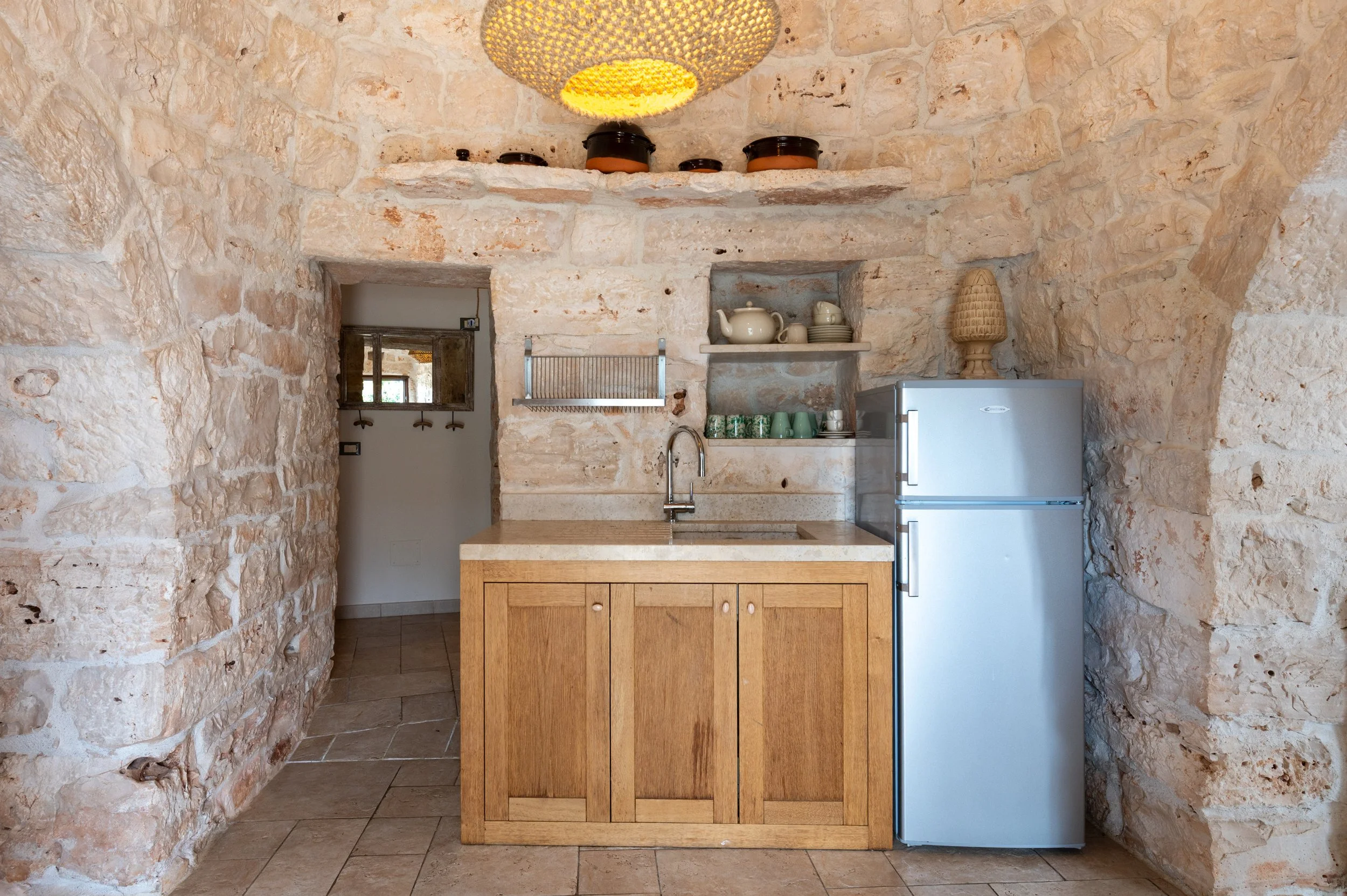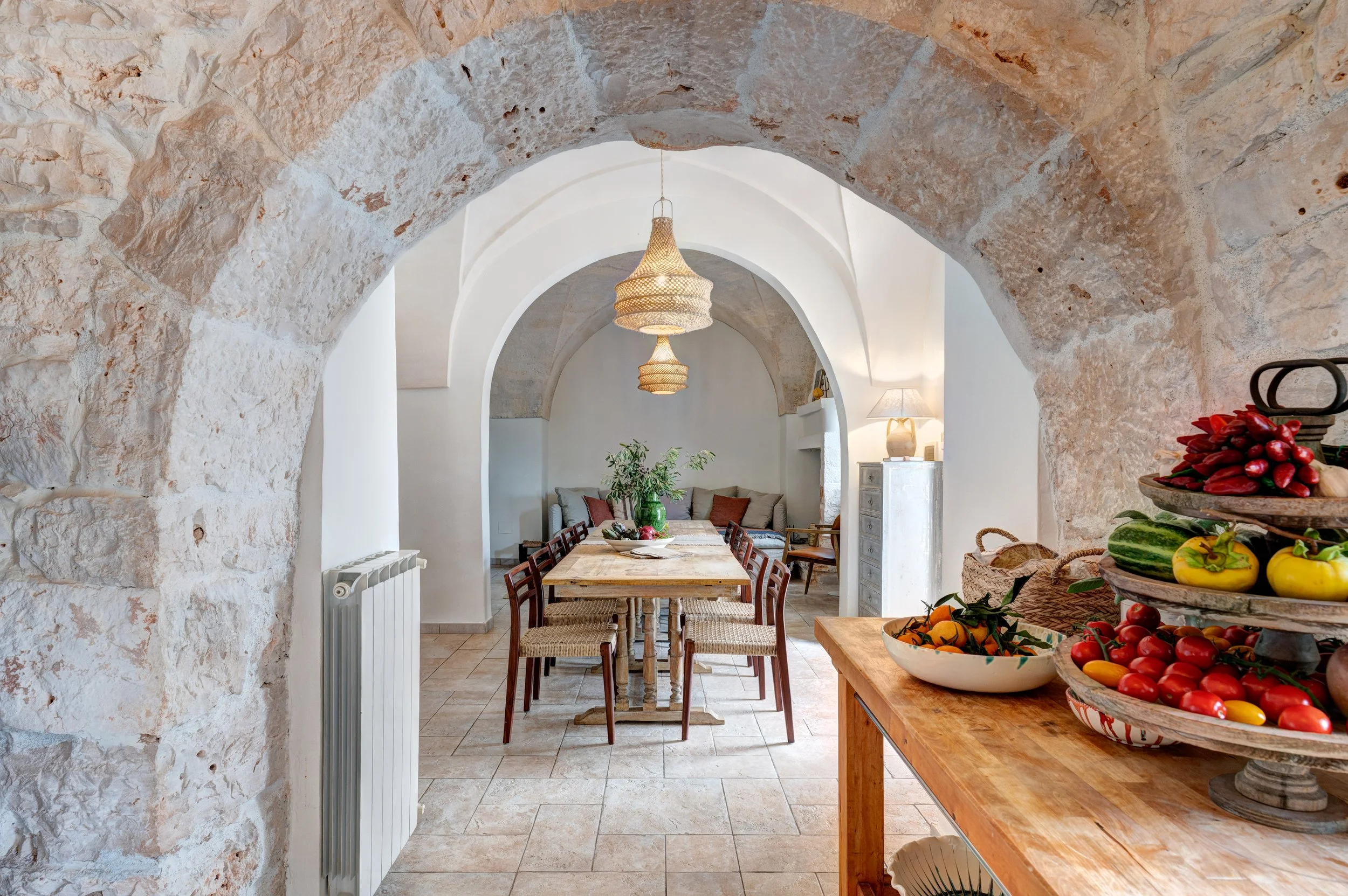 separating the main trulli building & the villetta is a large stone patio with dining table & chairs for al fresco dining